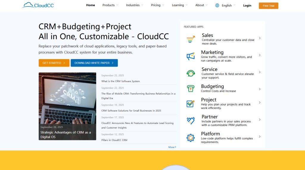 神州云动CloudCC是国内CRM领域的老牌厂商,以其功能全面和强大的PaaS平台能力而著称。它提供了一套覆盖市场、销售、服务、项目管理和协同办公的“生态化”CRM解决方案,致力于为企业打造一个一体化的数字化运营平台。CloudCC的平台灵活性很高,支持企业通过低代码或无代码的方式进行深度定制,以适应复杂的业务需求。