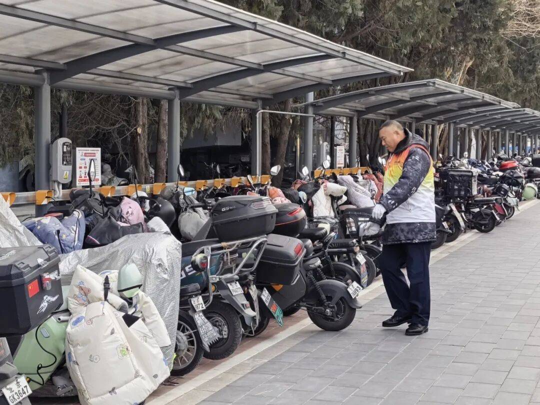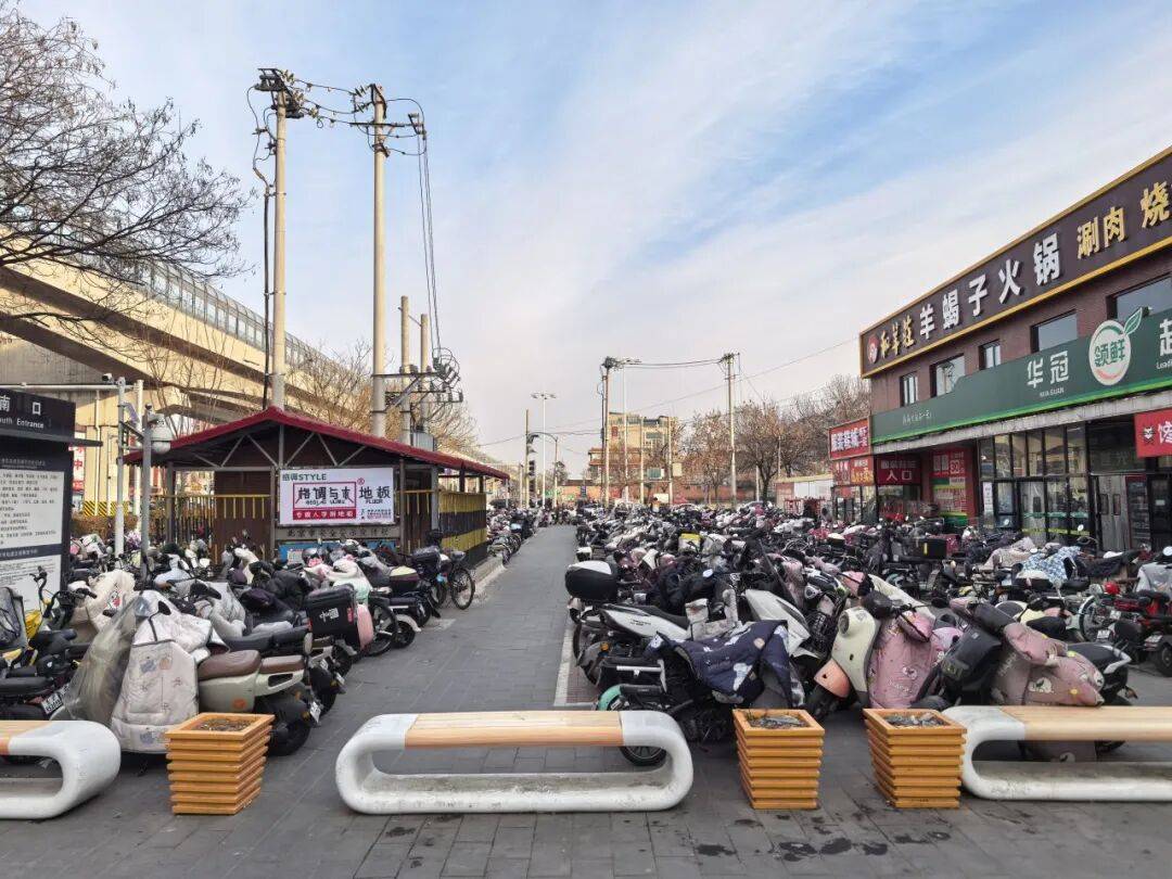 房山区拱辰街道社会治理组副主任李三为介绍,大学城西城铁站在高峰时期有4000多辆非机动车停放。改造之前,站点两侧A口还有B口只能停放大概六七百辆车。通过深挖闲置空间,新增车位3900多个,同时在自行车棚又新加了110个充电桩,方便市民充电。每天早高峰的时候,街道的志愿者和周边社区的工作人员会进行疏导,通行效率有了很大的提升。