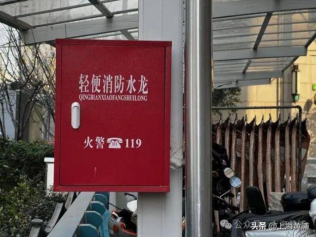 北方公寓属于典型的独栋袖珍型老旧小区,内部无多余公共空间,非机动车长期依赖沿街停车棚停放和充电。此次改造中,相关部门因地制宜,在沿街车棚内加装了红色轻便消防水龙箱,不占空间、便于操作,最大程度适配了“边角地带”的应急需求,也成为老街巷老社区改造中的一个亮点。