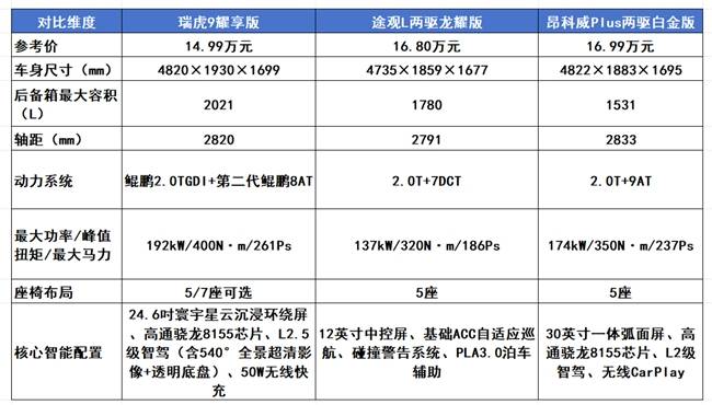 U8国际,u8国际官方网站,u8国际网站,u8国际网址,u8国际链接,U8国际APP下载如今在汽车市场,15万左右SUV市场仍成为众多家庭用户的关注焦点。这一区间的车型既要满足日常通勤的平顺性,又要兼顾全家出行的空间与舒适性,同时在智能配置与动力性能上也不能妥协。在当前市场中,奇瑞瑞虎9耀享版、途观L两驱龙耀版以及昂科威Plus两驱白金版凭借各自的产品特性,成为不少消费者的备选车型。本文将从动力性能、空间表现、智能配置三个核心维度,对这三款车型进行深度解析,为大家的购车决策提供参考。