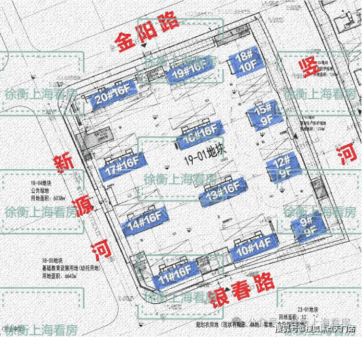20-01地块:拟建6栋16F高层住宅、2栋14F高层住宅、3栋10F高层住宅、1栋9F高层住宅以及若干配套用房。
