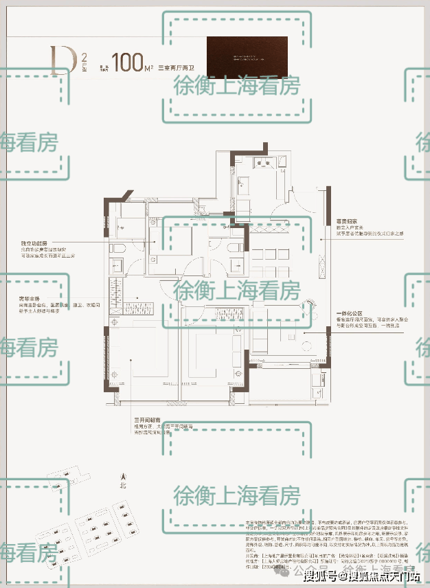 相比传统百平米小三房,该户型用相似的建面,做出了改善三房的感觉,绝对是市场教科书户型!