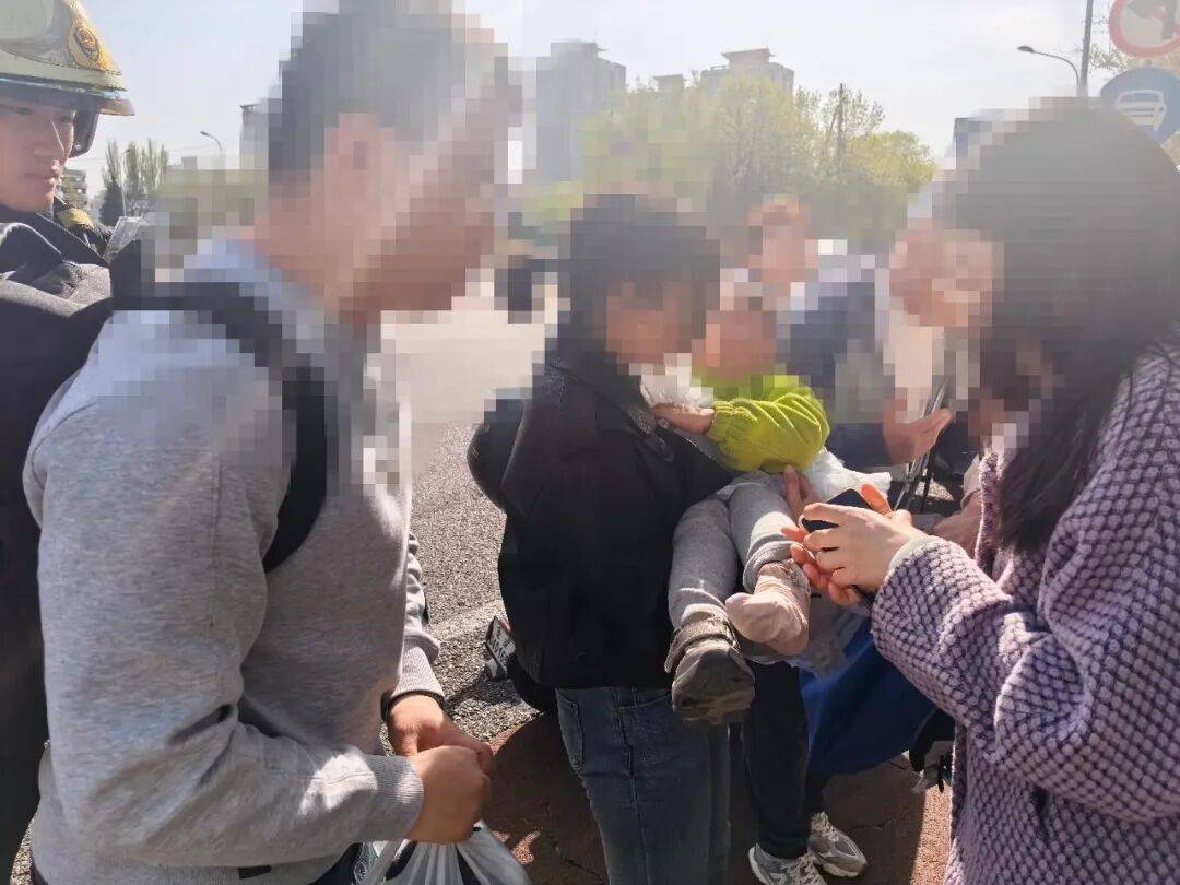 为稳定孩子情绪,消防员立即蹲下身,轻声细语安抚疏导,分散孩子注意力,不断鼓励孩子勇敢配合救援,让孩子逐渐放松下来、停止哭闹。