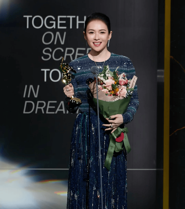 出现在典礼上的章子怡精神饱满,但微微发福的两颊,让外界忍不住感叹:影后老了。