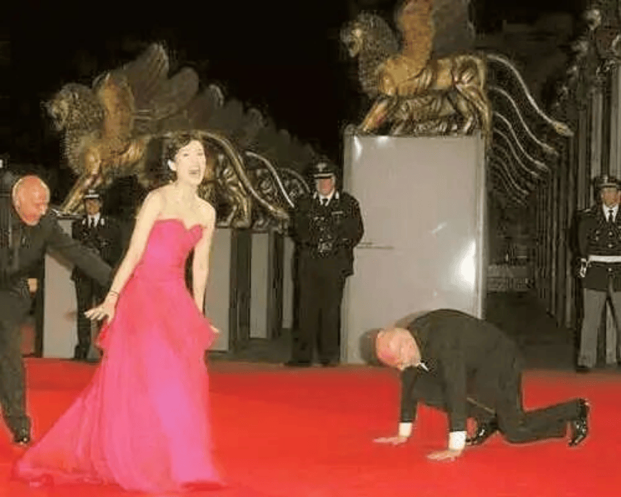 据传,当时张艺谋带着年轻的章子怡远赴柏林参加电影节时,千叮咛万嘱咐:作为演员,不要跟着导演上台。
