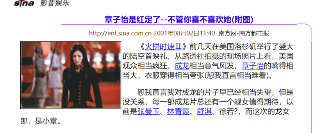 当时《南方周末》还拟了一个《章子怡是红定了——不管你喜不喜欢她》的标题,就记录了社会舆论对她红透半边天的矛盾态度。